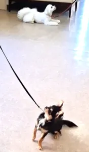 イゴくんのお家にはもう一頭チワワがいますが、シニア犬なのでイゴくんが一緒に遊ぼうと激しく誘うばかりで、うまく遊べないようです。