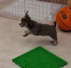 デールくんはまだ散歩に出てないので、お家によく似た雰囲気の二階パピールームでのクラスですが、お家と同じように教室内を走り回りました