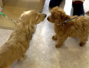 新年初めてのクラス、コアくん(トイプードル)とたけのこくん(ミニチュアダックス)が初参加です。コアくんは初めての場所に緊張してあまり動かず、シッポも下がっていましたがすぐに慣れて・・・