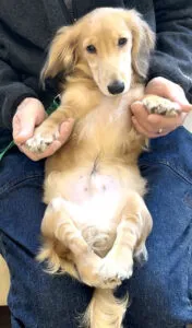 張り切りモードのたけのこくんでしたが、抱っこやマッサージは大好きで、飼い主さんのお膝の上でリラックス。幼いうちに嬉しくてはしゃぐのと、静かに落ち着くのとを切り替える練習ができると良いですね。