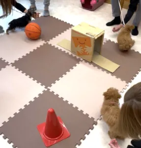 その後、トイプードルのハナちゃんヨークシャテリアのトラくんが合流。グループレッスンが始まります。