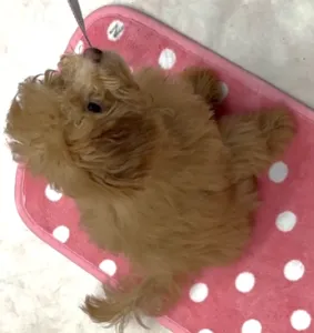 トイプードルのモコちゃんが初めての参加なので先に入室して頂き、お部屋の体験から始めましたが・・・一塁セーフ!という感じで、異質な人工芝にも走りこんで乗っていきます。とっても活発です。