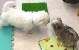 子犬によっては何も確認せずにとにかく動く子、動きながら周囲の様子を気にして進んで行く子、じっと観察して動かない子。その子の動きに合わせてどんな方法がマッチするかを見ながらクラスを進行しています。
