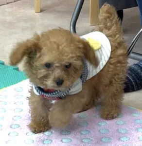 レモンくん(トイプードル)にも良い感じで近づいて行きます。犬を見て行きたがり過ぎても、逃げ腰でもうまく関わることが出来ません。相手の様子を観察しながら動くことが大切です。活発なレモンくんとは至近距離まで関わることができました。