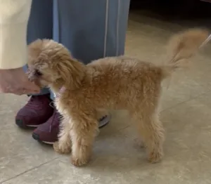 トイプードルのリラちゃんと初めまして。成犬との挨拶は、こんなふうに一瞬顔を合わせるだけでも充分です。