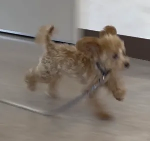 トイプードルのリラちゃんと初めまして。成犬との挨拶は、こんなふうに一瞬顔を合わせるだけでも充分です。