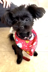 明るい性格で、お洋服を着慣れていることもあり、初めてのバンダナも気にせずご機嫌です。