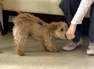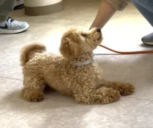 人が大好きな子犬は、飛びつこうとしてしまうので、人に会った時には下の方からそっと触ってもらいましょう。